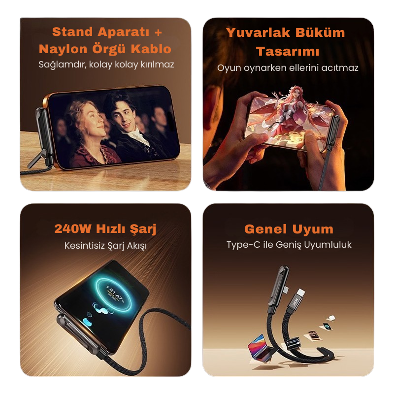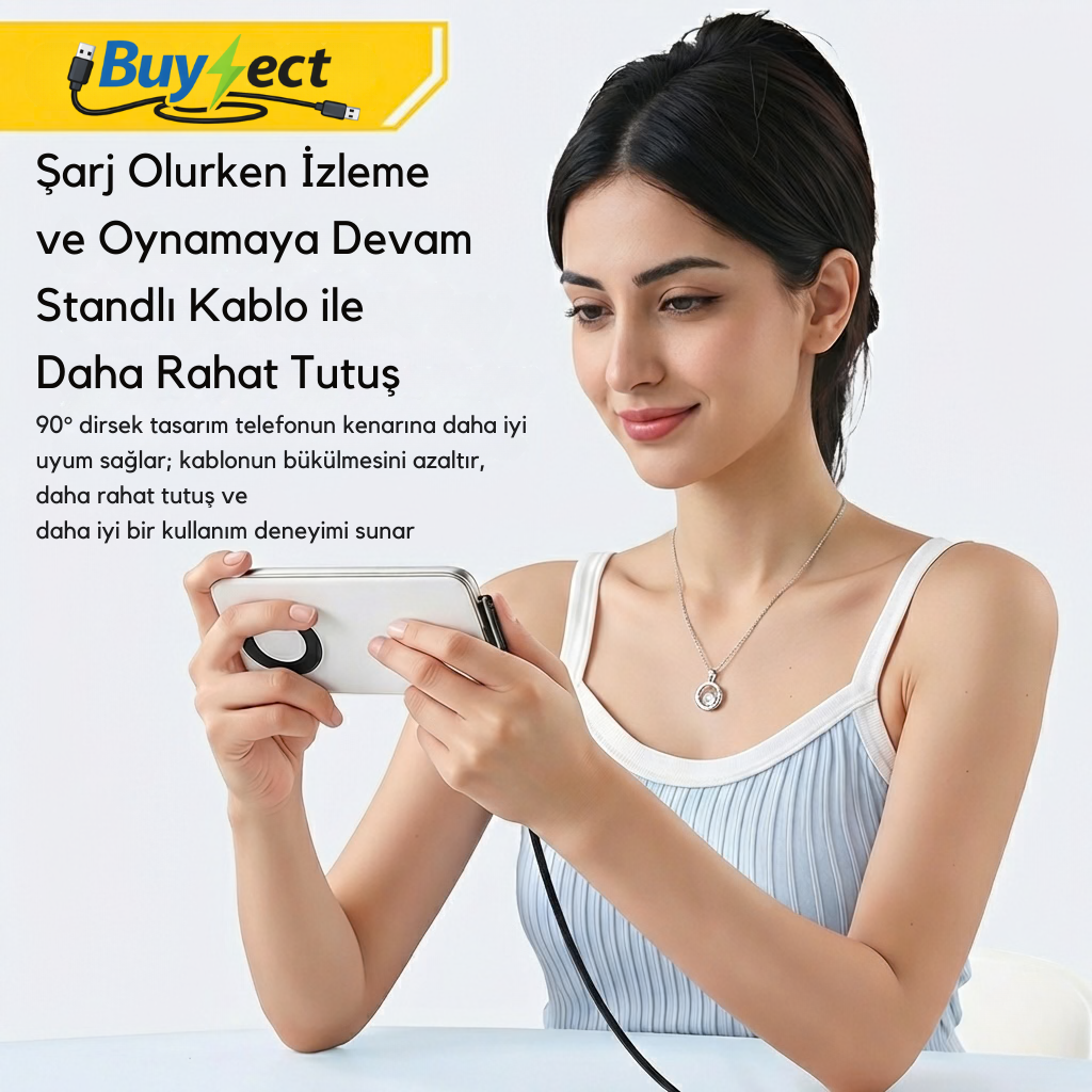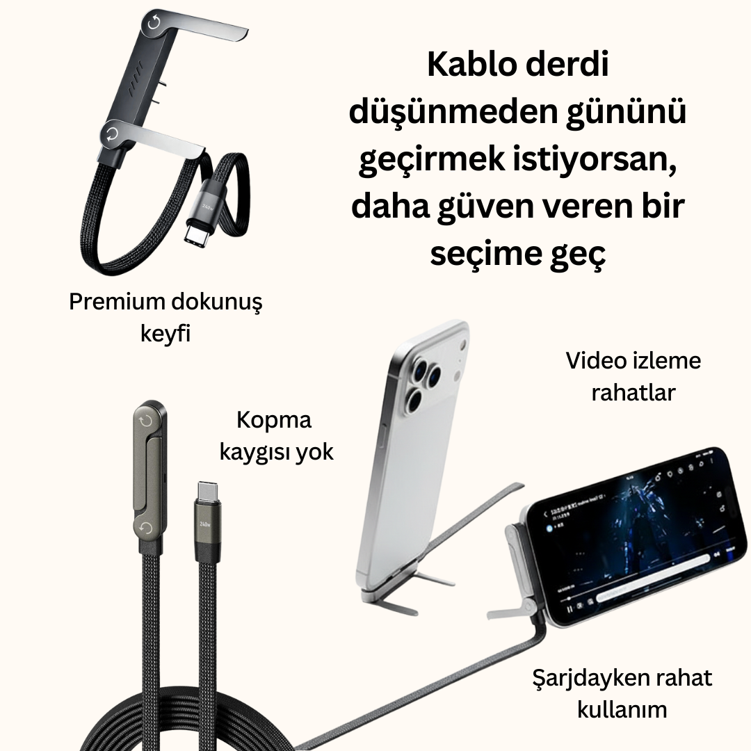 Şarjdayken telefonu elde tutmak, açı ayarlamak ve kabloyla uğraşmak gün içinde defalarca tekrar eden küçük bir stres yaratır. Standlı tasarım sayesinde telefon sabit durur; dikey/yatay kullanımda rahatça devam edersin. Böylece şarj “bekleme” anı olmaktan çıkar, günlük rutininin konforlu bir parçasına dönüşür. Masan daha düzenli görünür, sen de daha rahat hissedersin.